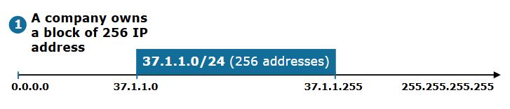 فرض کنید یک شرکت بلوکی از ۲۵۶ آدرس IP عمومی دارد که توسط ارائه دهنده خدمات محلی ارائه میشود.