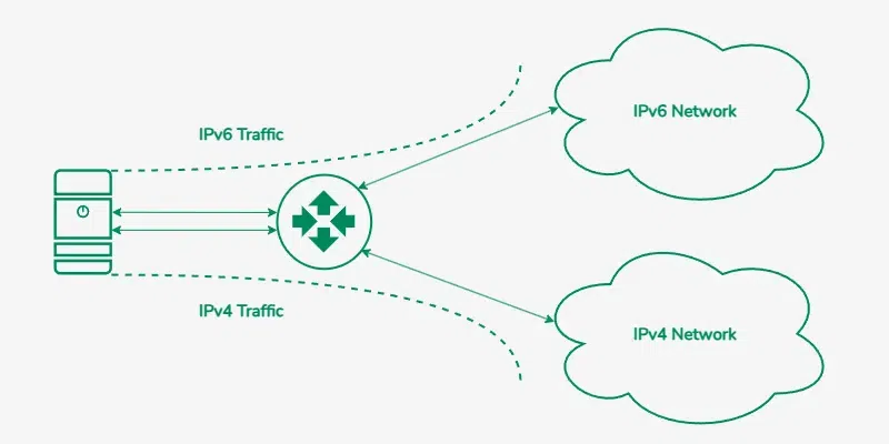 وقتی میخواهیم درخواستی را از یک آدرس IPv4 به یک آدرس IPv6 ارسال کنیم، این امر امکانپذیر نیست زیرا انتقال IPv4 و IPv6 با هم سازگار نیستند. برای حل این مشکل، ما از برخی فناوریها استفاده میکنیم که به انتقال آسان از IPv4 به IPv6 کمک میکنند. این فناوریها در زیر ذکر شدهاند: