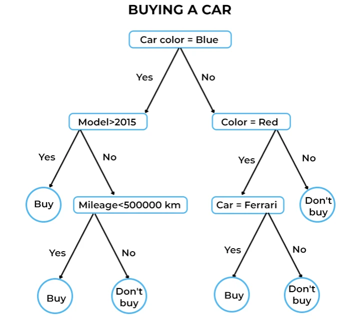 - فهم آسان: درختهای تصمیم بصری هستند که دنبال کردن فرآیند تصمیمگیری را آسان میکند.