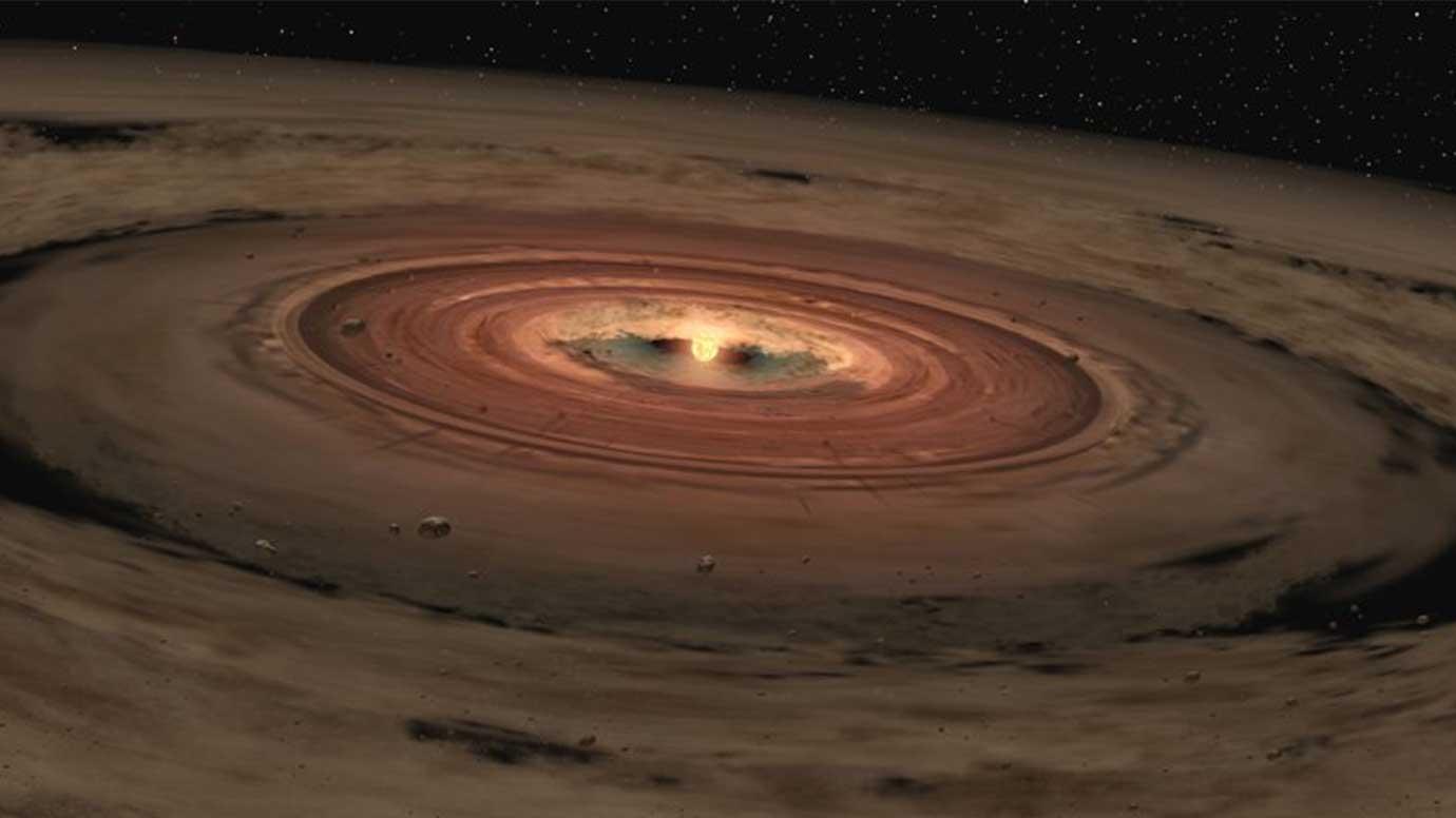 این طرح هنری، ستارهای بسیار جوان را نشان میدهد که توسط دیسکی از گاز و غبار احاطه شده است، مواد خامی که گمان میرود سیارات سنگی مانند زمین از آنها تشکیل شدهاند.